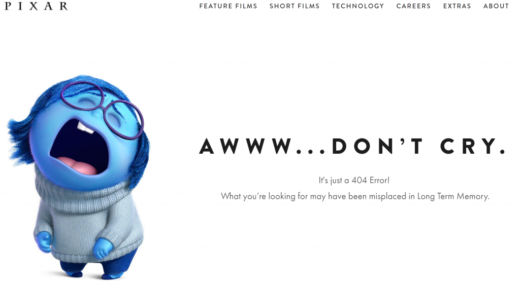 Pixar verwijst naar zijn populaire film Inside Out om uit te leggen wat is misgelopen. Dankzij het navigatiemenu bovenaan kunnen bezoekers gemakkelijk verder surfen.
