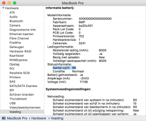 In theorie kan de batterij van een Macbook 1.000 keer volledig opgeladen worden. Het aantal doorlopen cycli controleer je op deze manier: