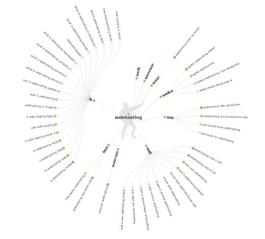 De resultaten die Answer The Public geeft bij de zoekopdracht ‘webhosting’.